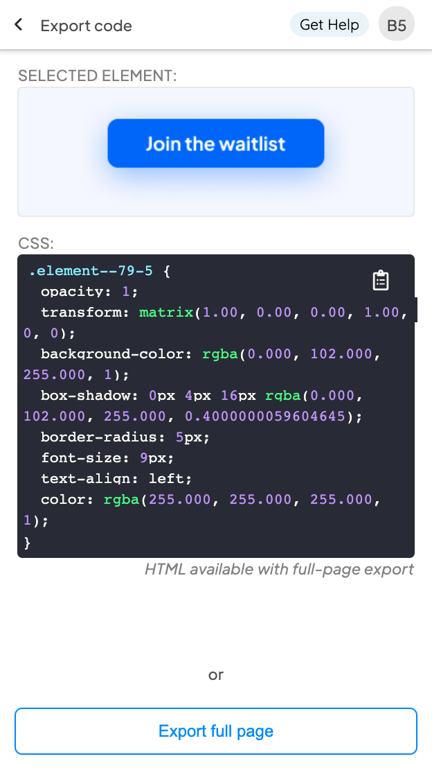 Export HTML/CSS code